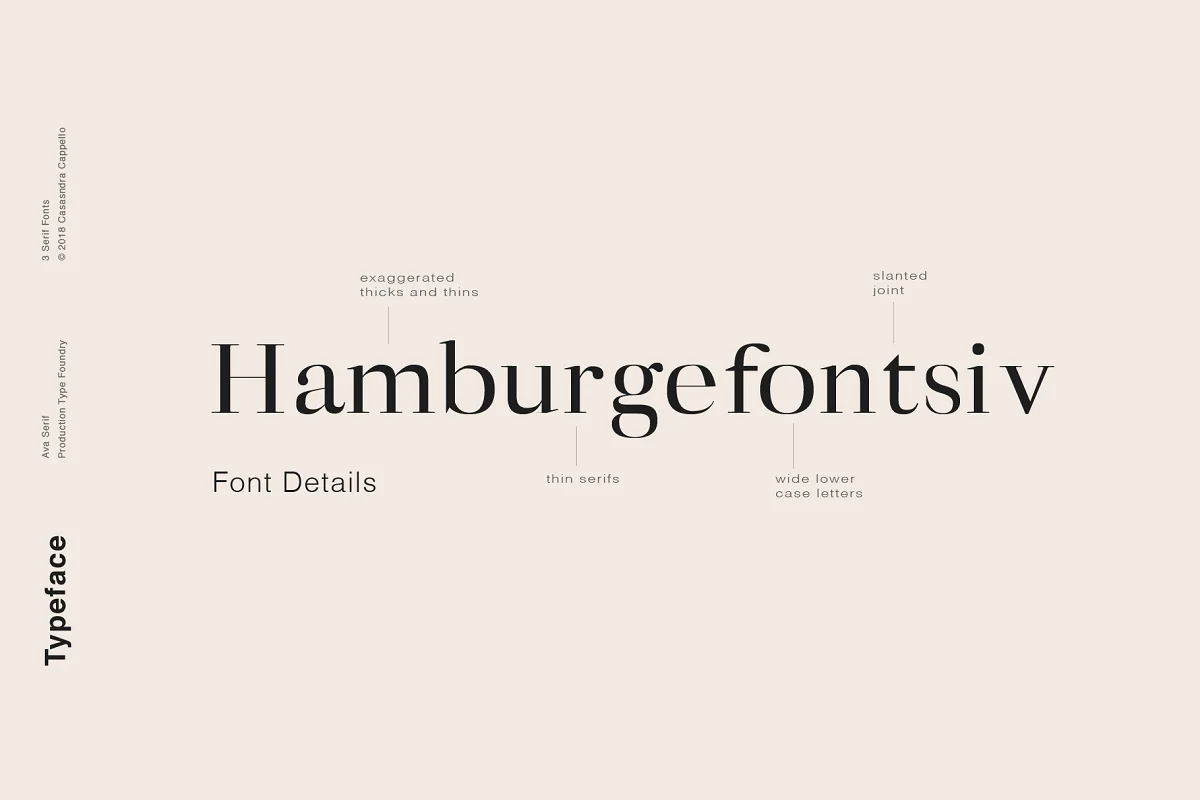 Ava is a classic serif typeface filled with personality. This classy and feminine typeface can be used for both headers and body copy.